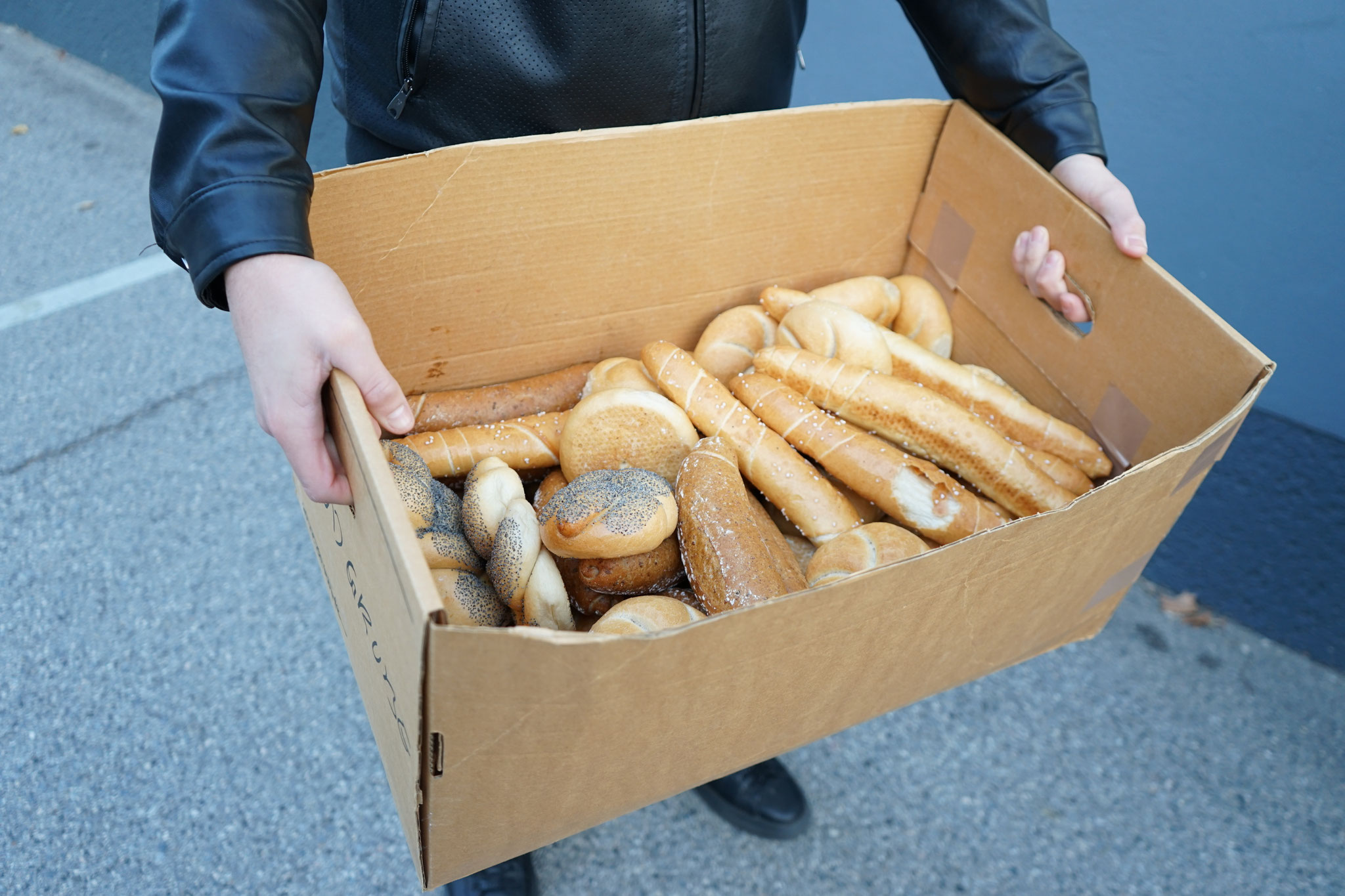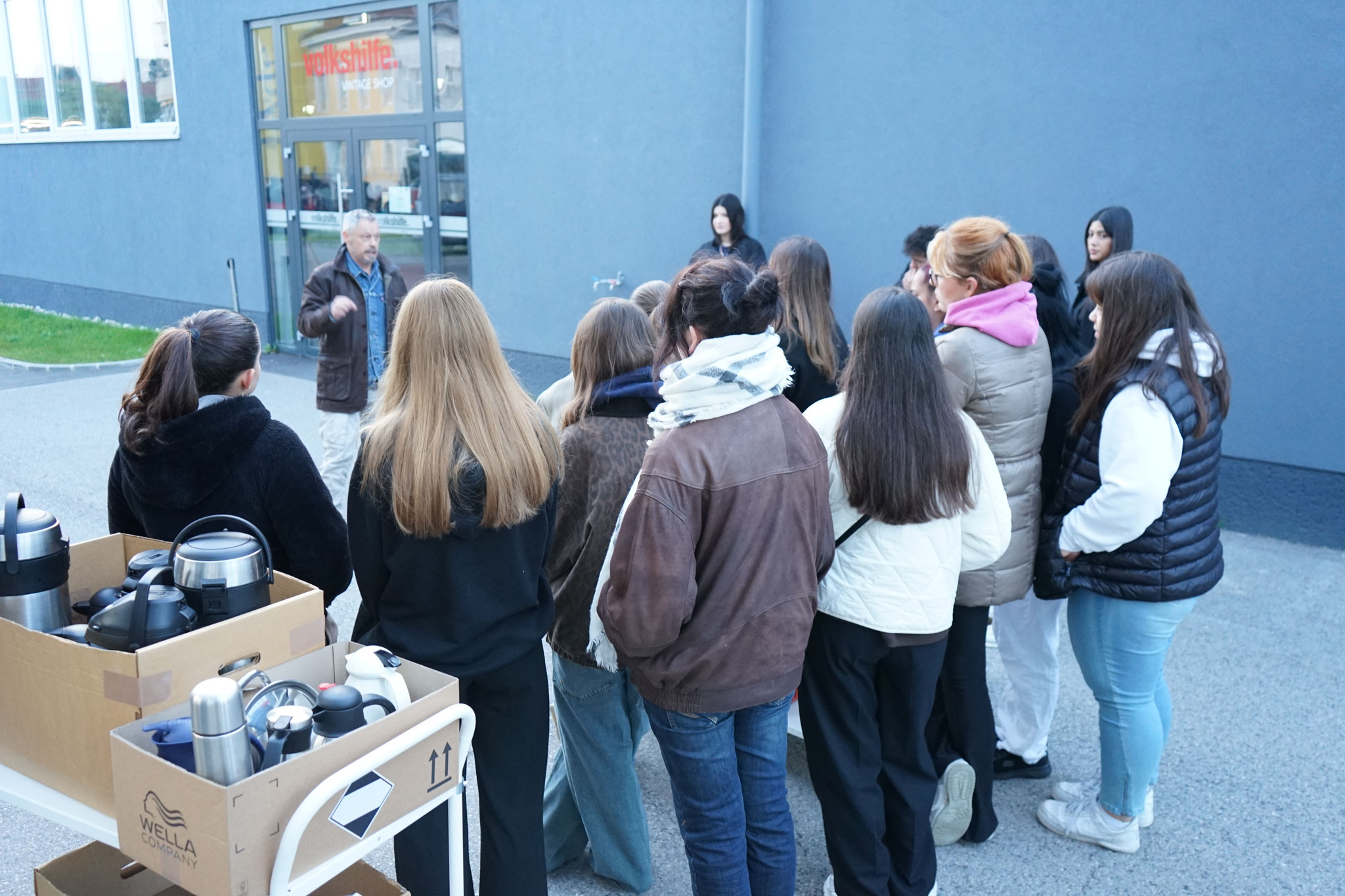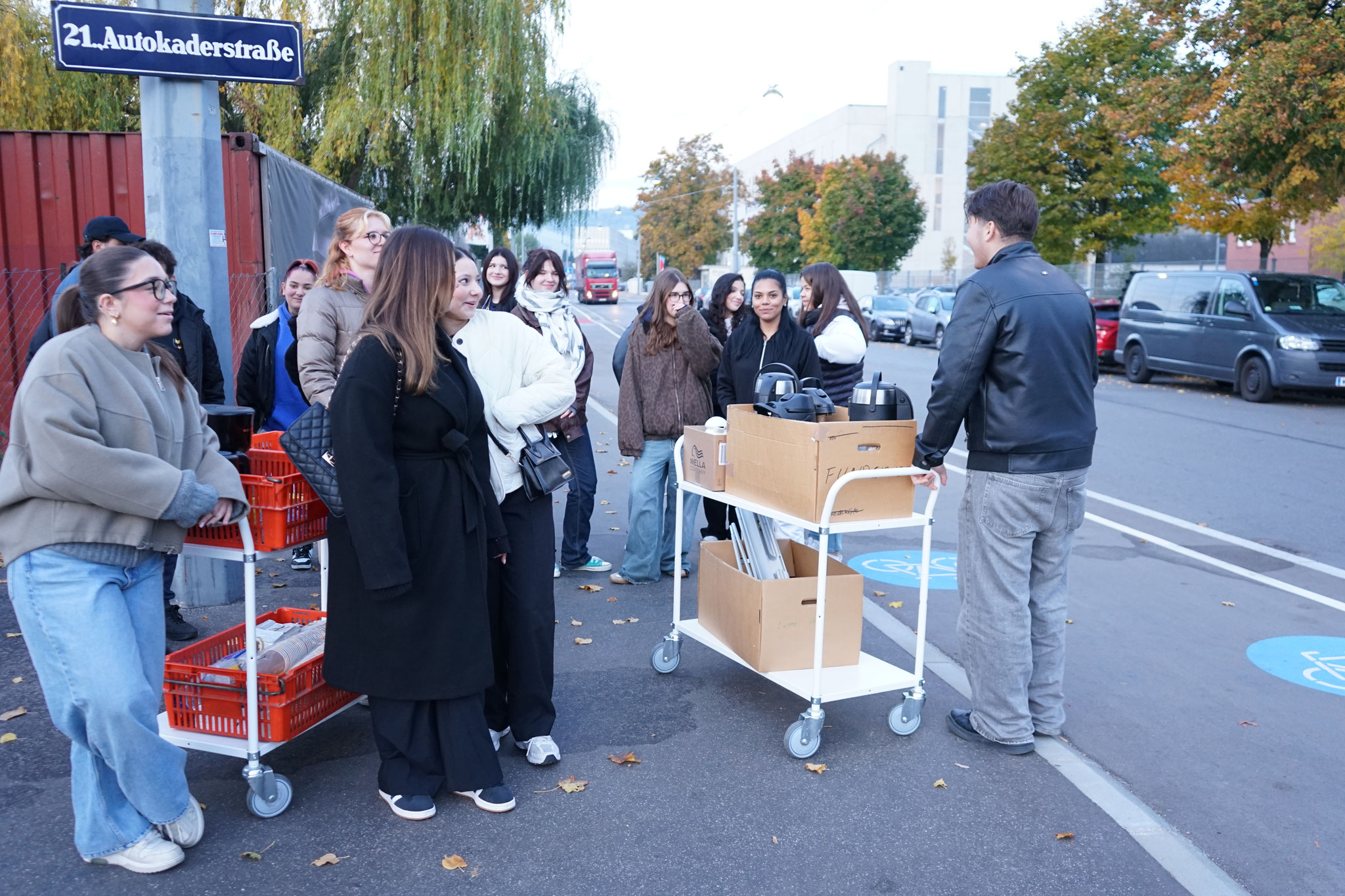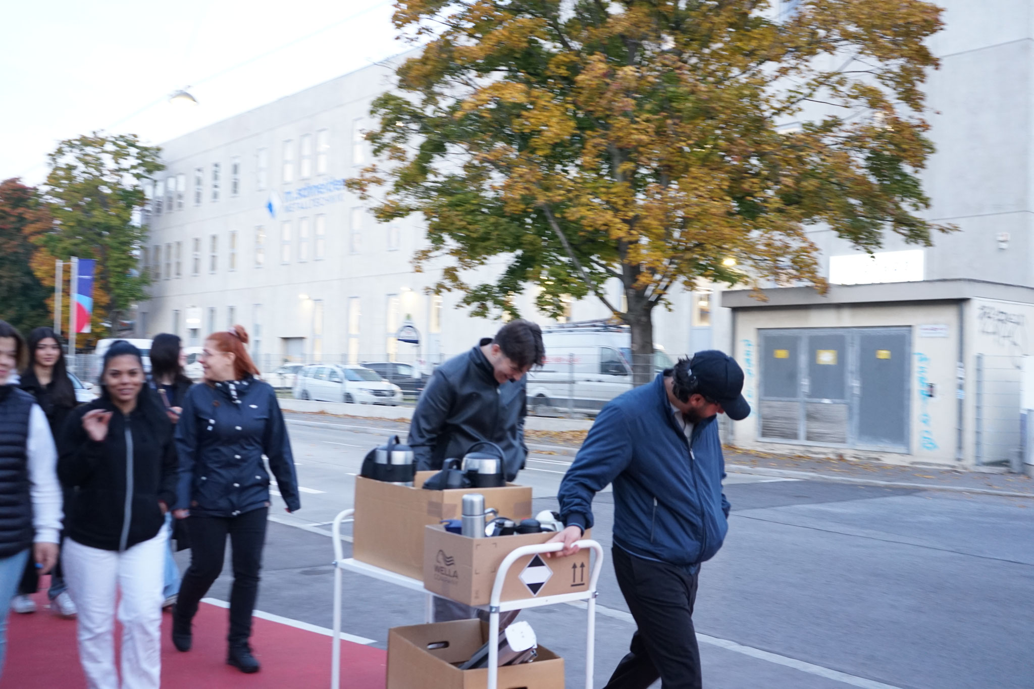 Gemeinsam beschlossen Sie zu helfen: 19 angehende Friseur*innen unterstützten die Ausgabe, schenkten Tee und Kaffee aus und verteilten Kipferl, die von der Firma Ströck gespendet wurden.