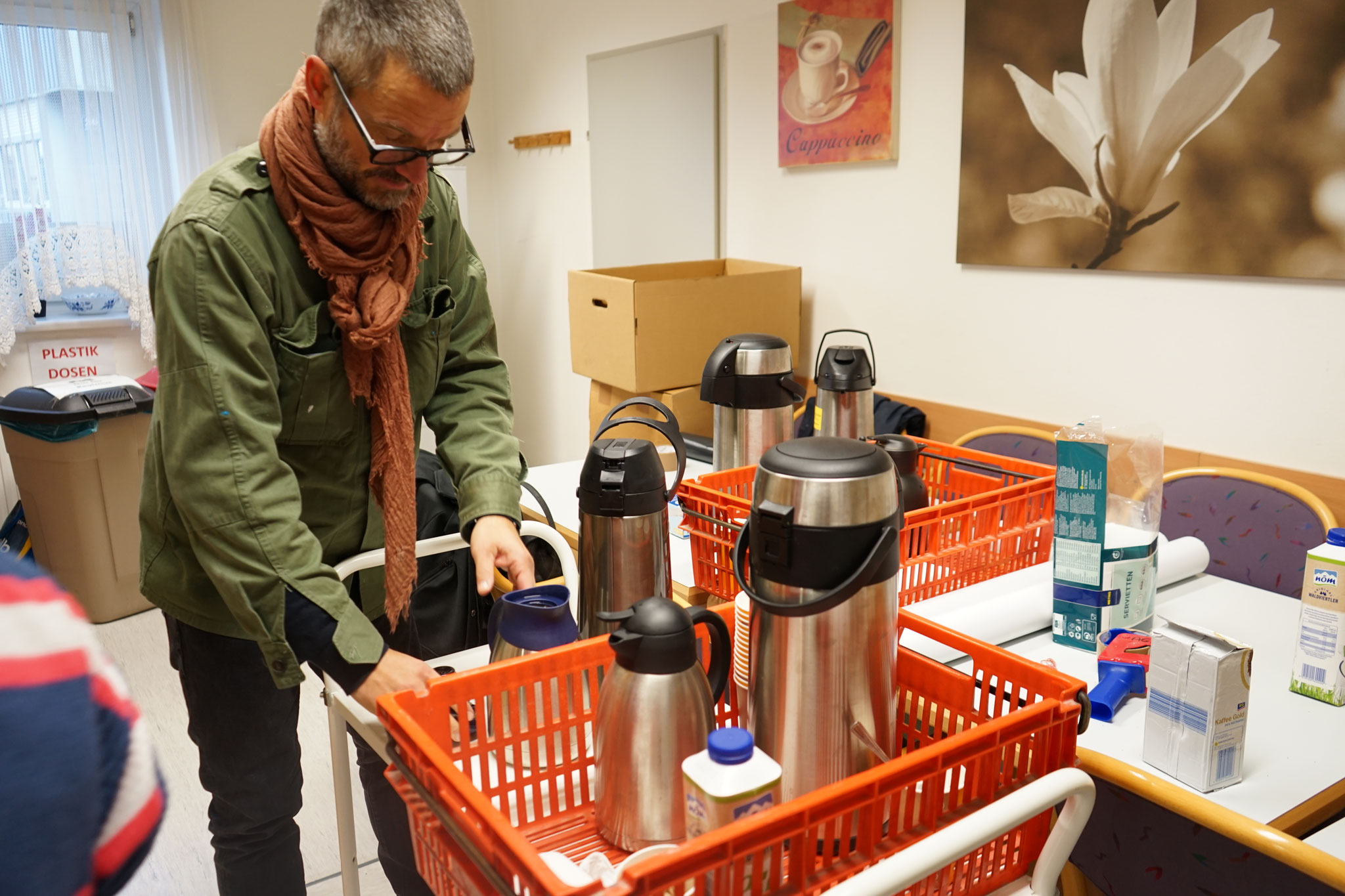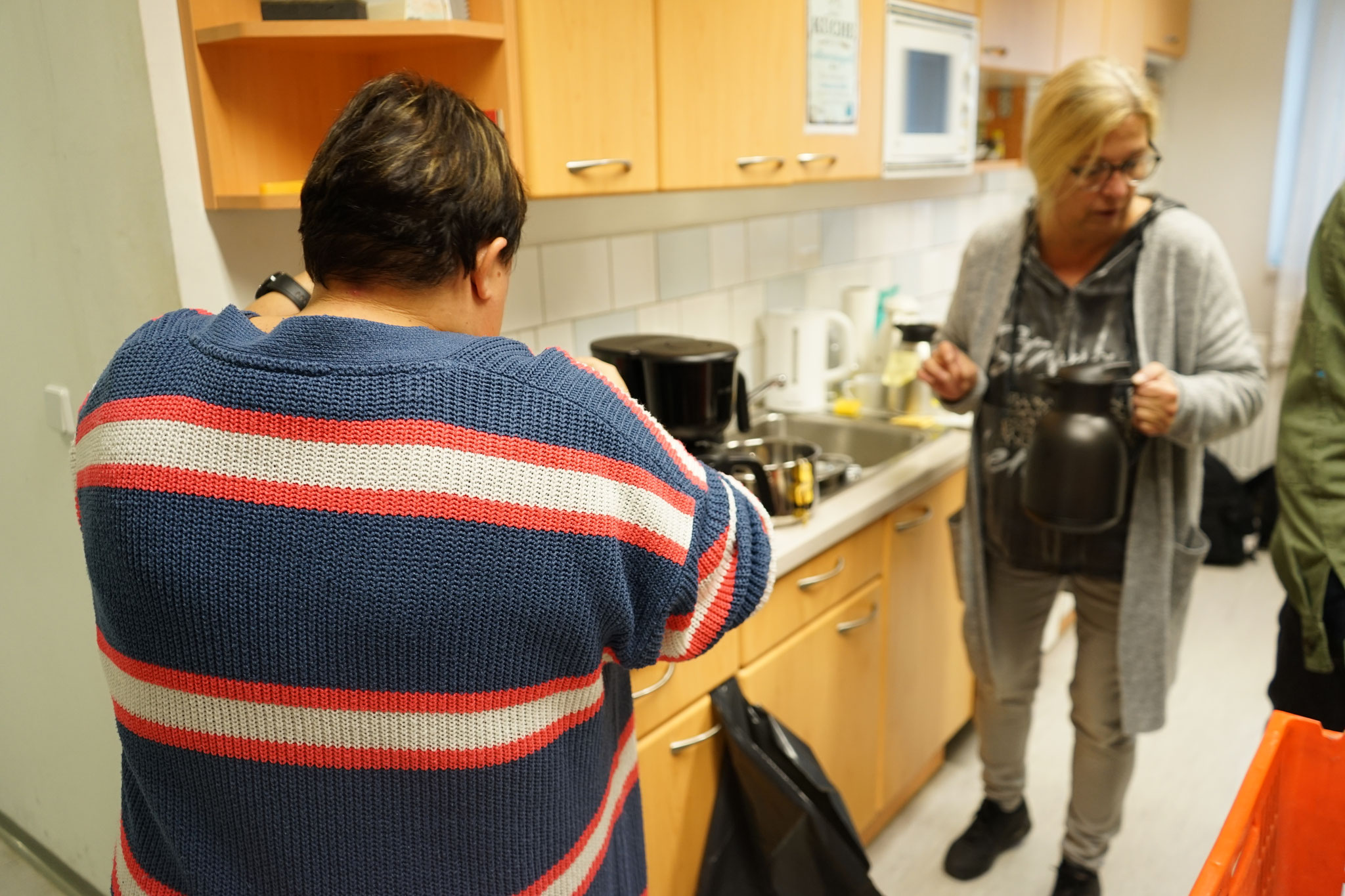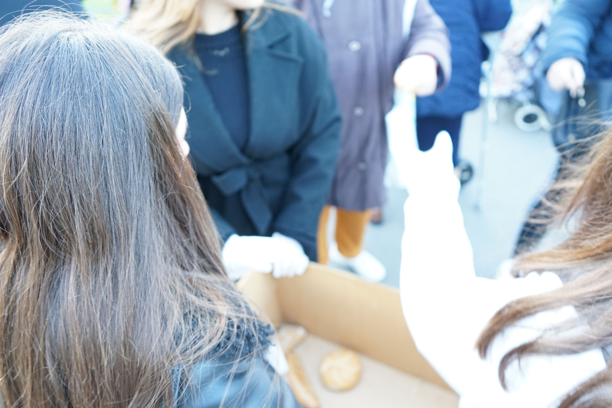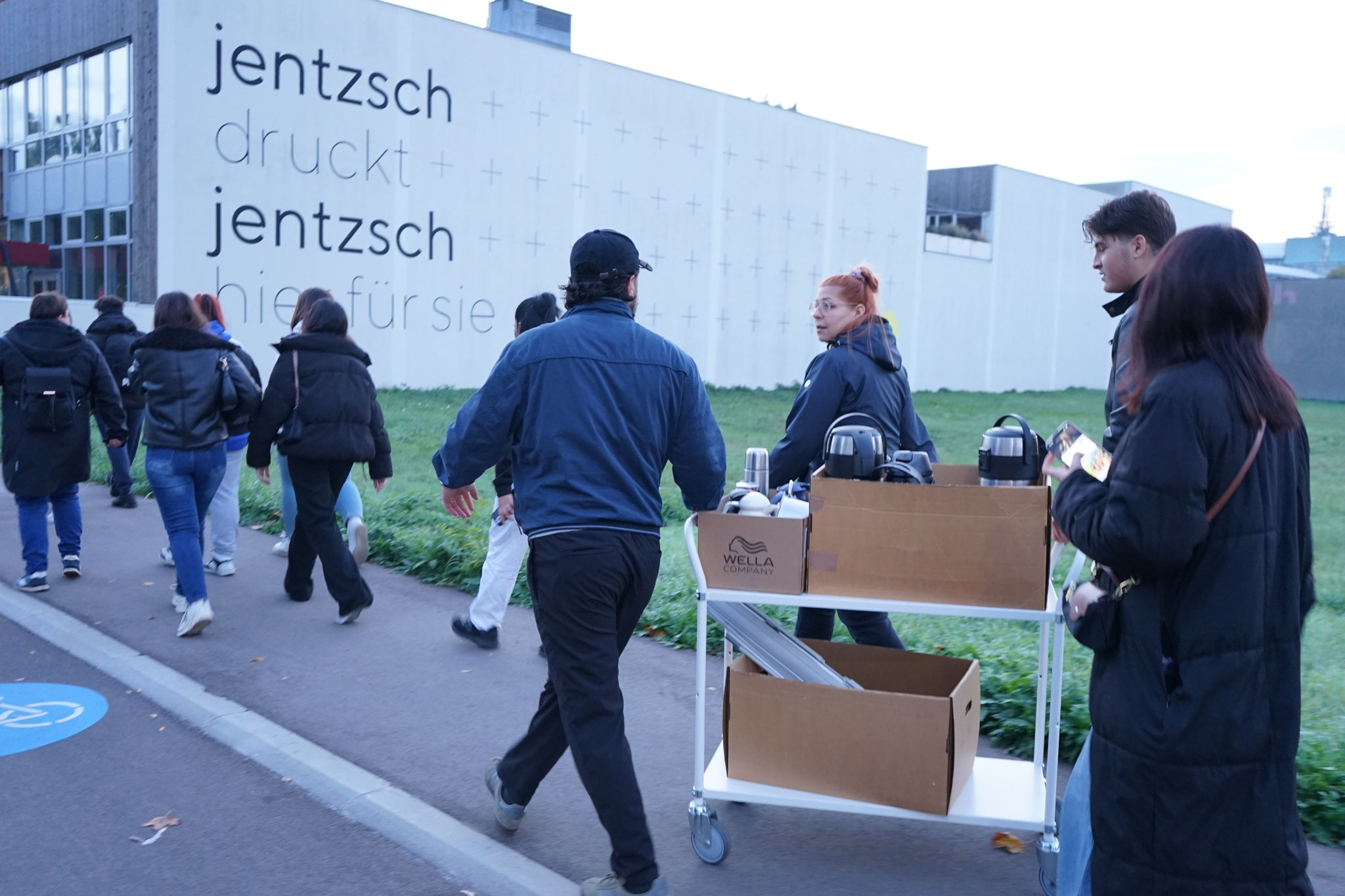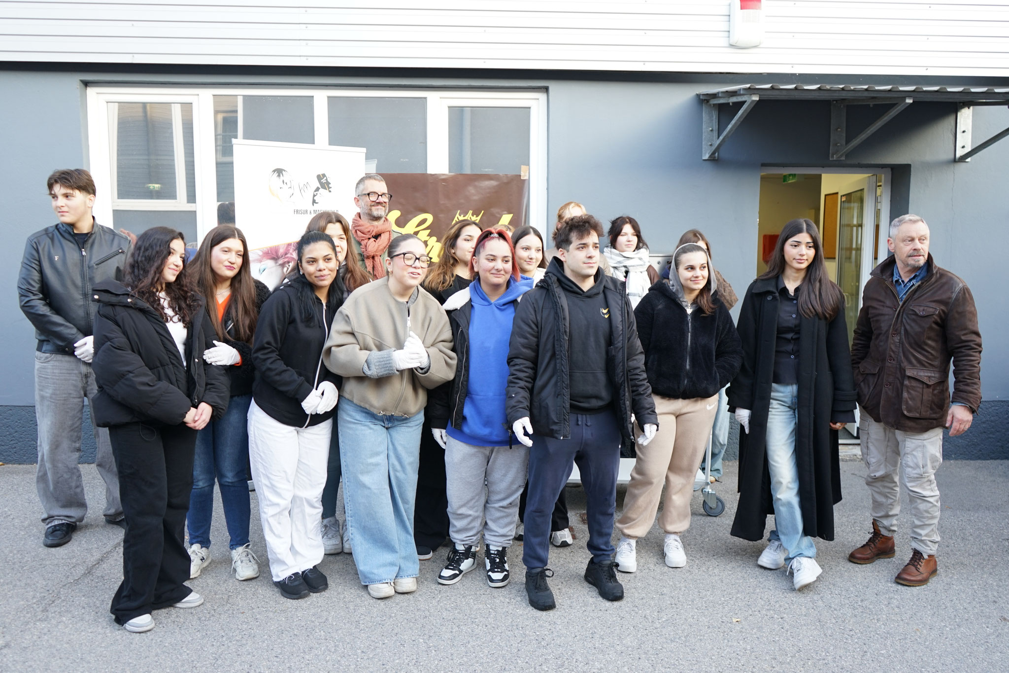 Gemeinsam beschlossen Sie zu helfen: 19 angehende Friseur*innen unterstützten die Ausgabe, schenkten Tee und Kaffee aus und verteilten Kipferl, die von der Firma Ströck gespendet wurden.
