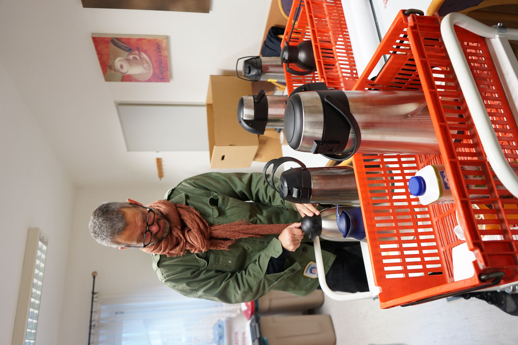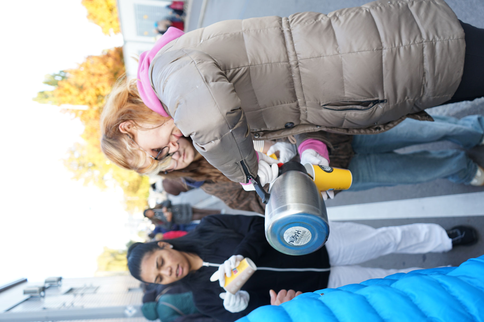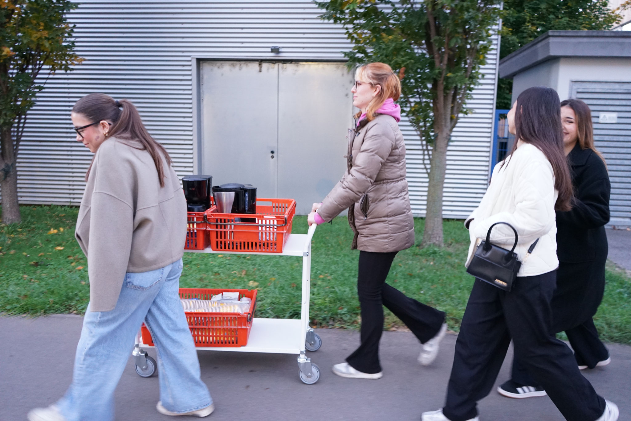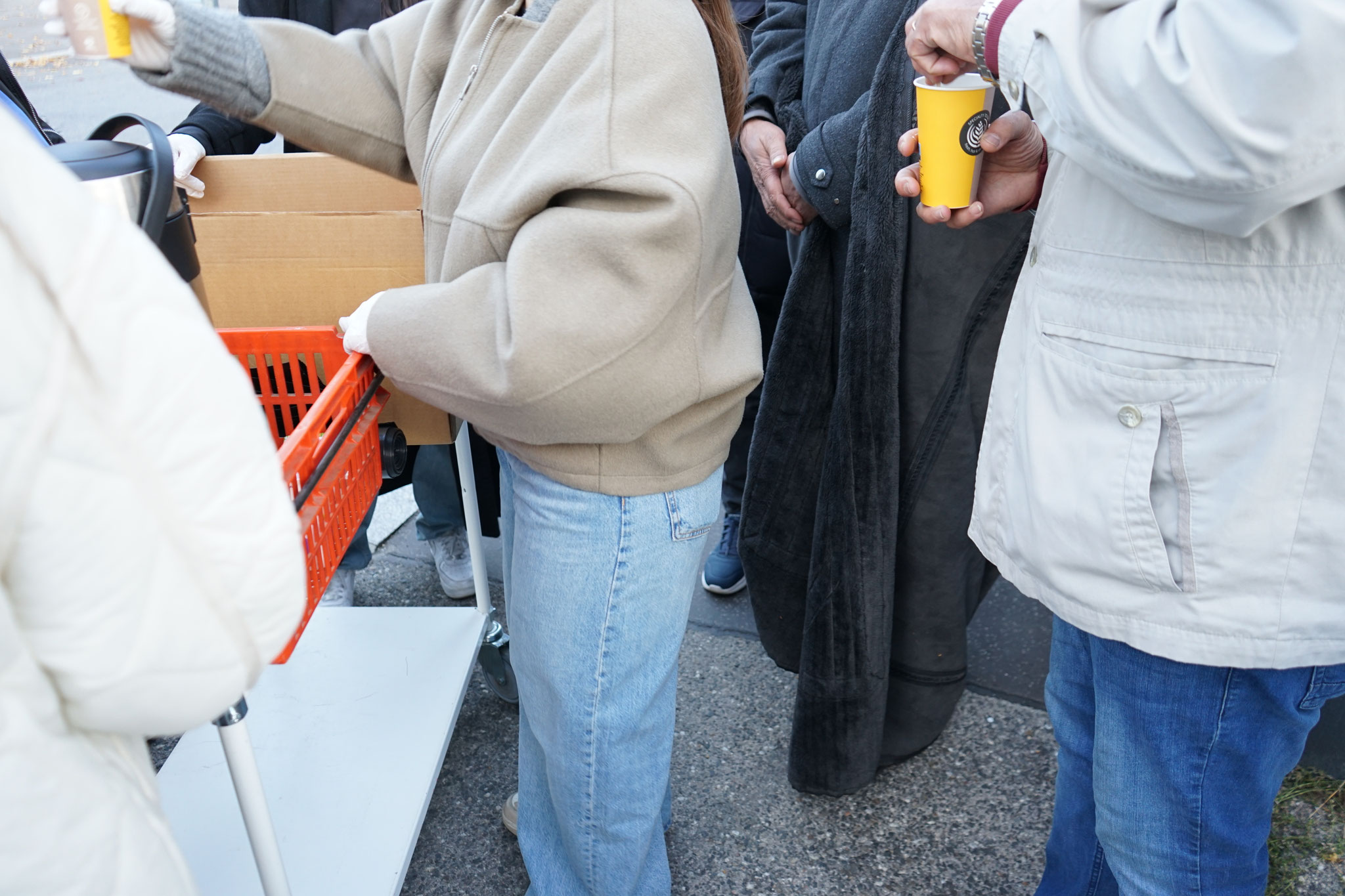Gemeinsam beschlossen Sie zu helfen: 19 angehende Friseur*innen unterstützten die Ausgabe, schenkten Tee und Kaffee aus und verteilten Kipferl, die von der Firma Ströck gespendet wurden.