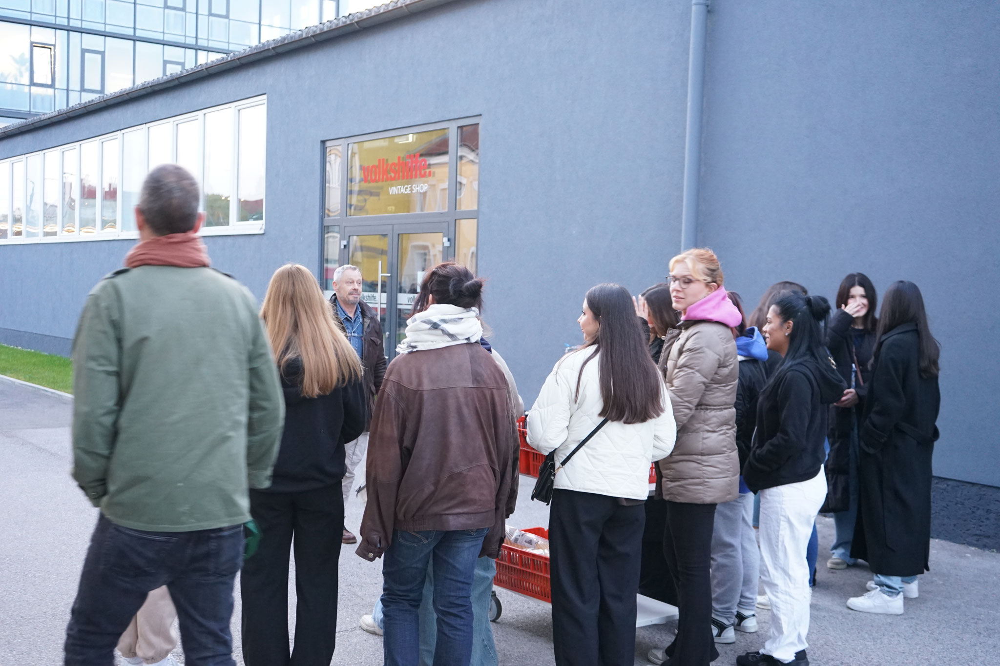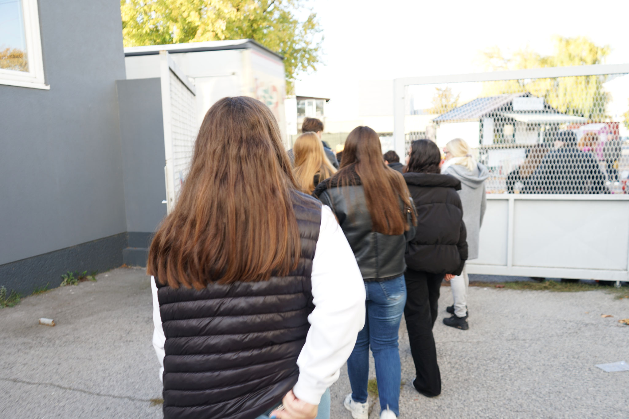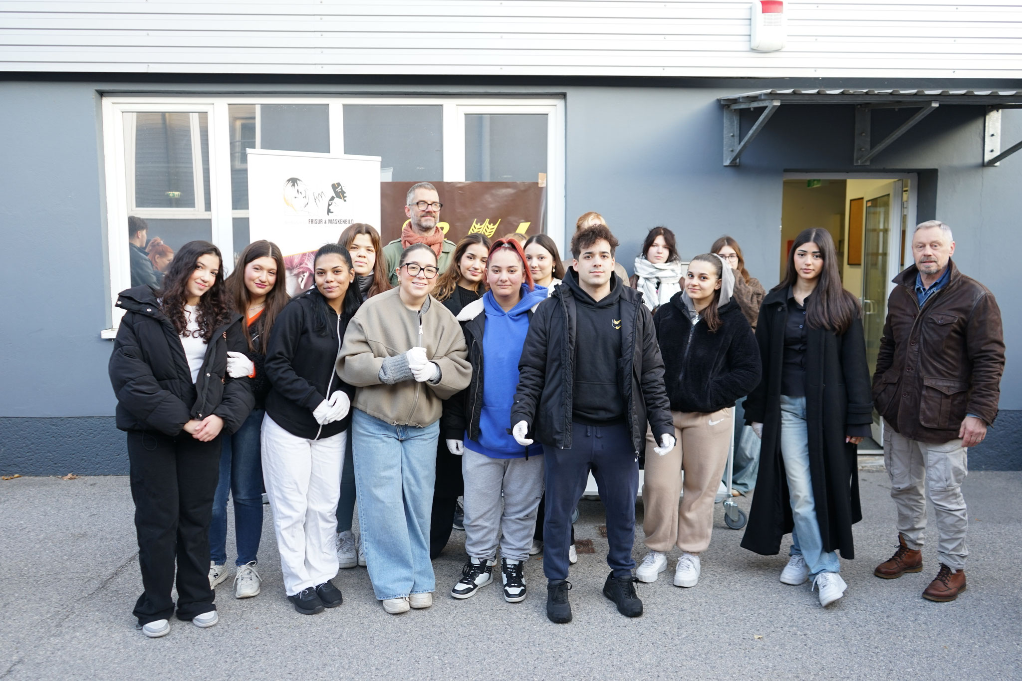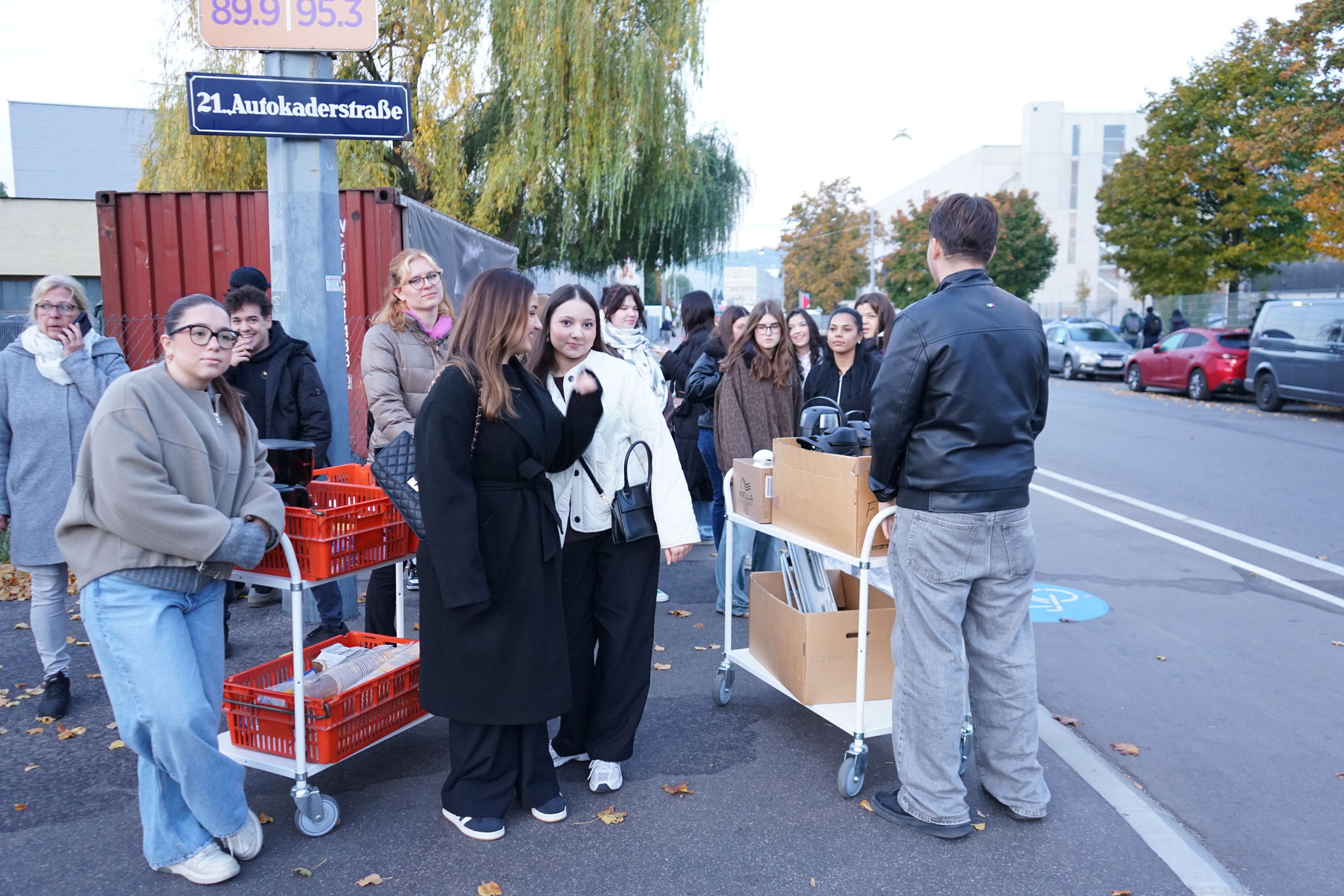 Dass Bildung über den Unterricht hinausgeht, bewies eine Klasse der Berufsschule für Frisur und Maskenbild in Floridsdorf. Jeden Dienstag gibt die Volkshilfe Wien in der Scheydgasse Lebensmittel an armutsbetroffene Wiener*innen aus.
