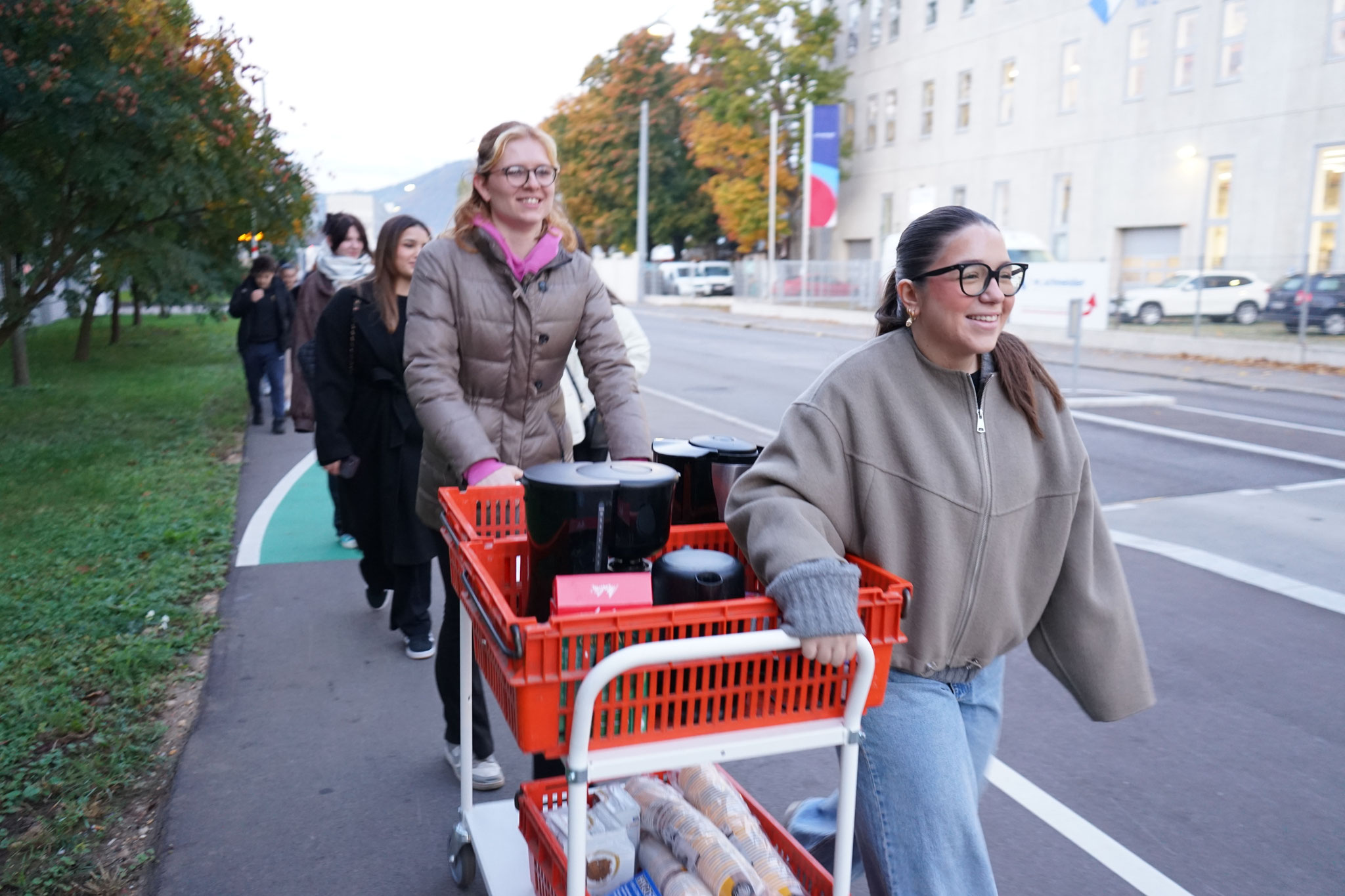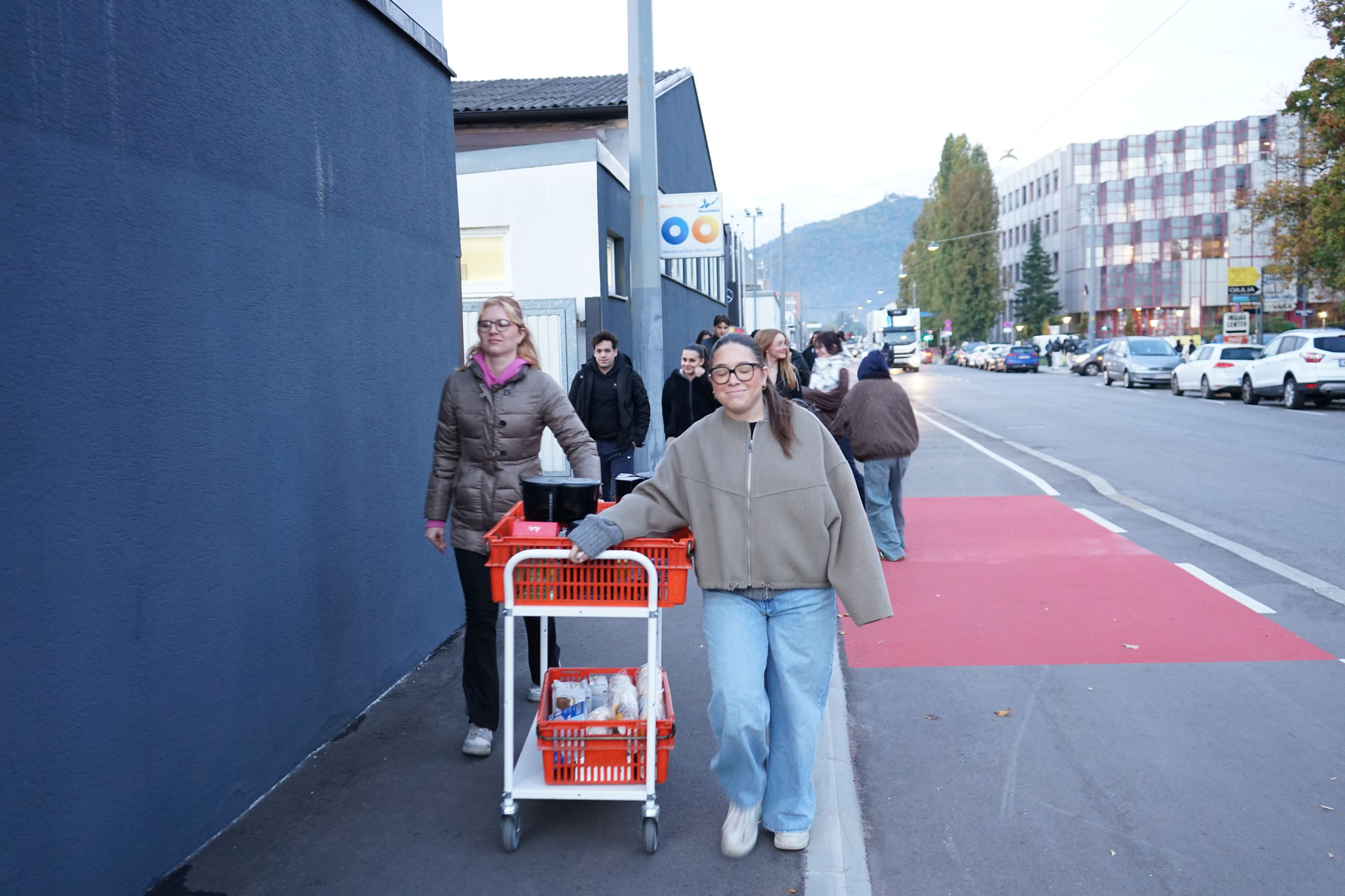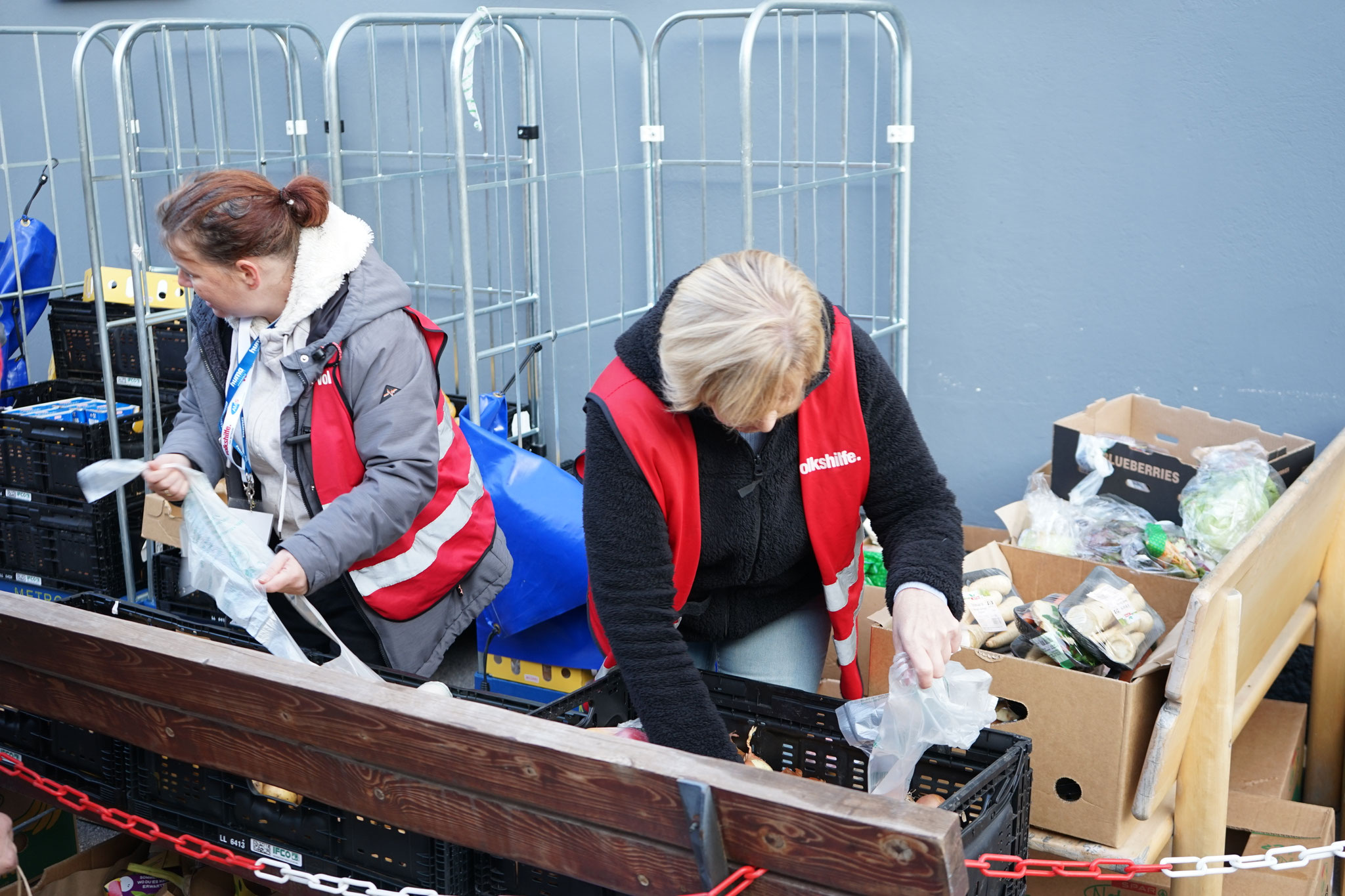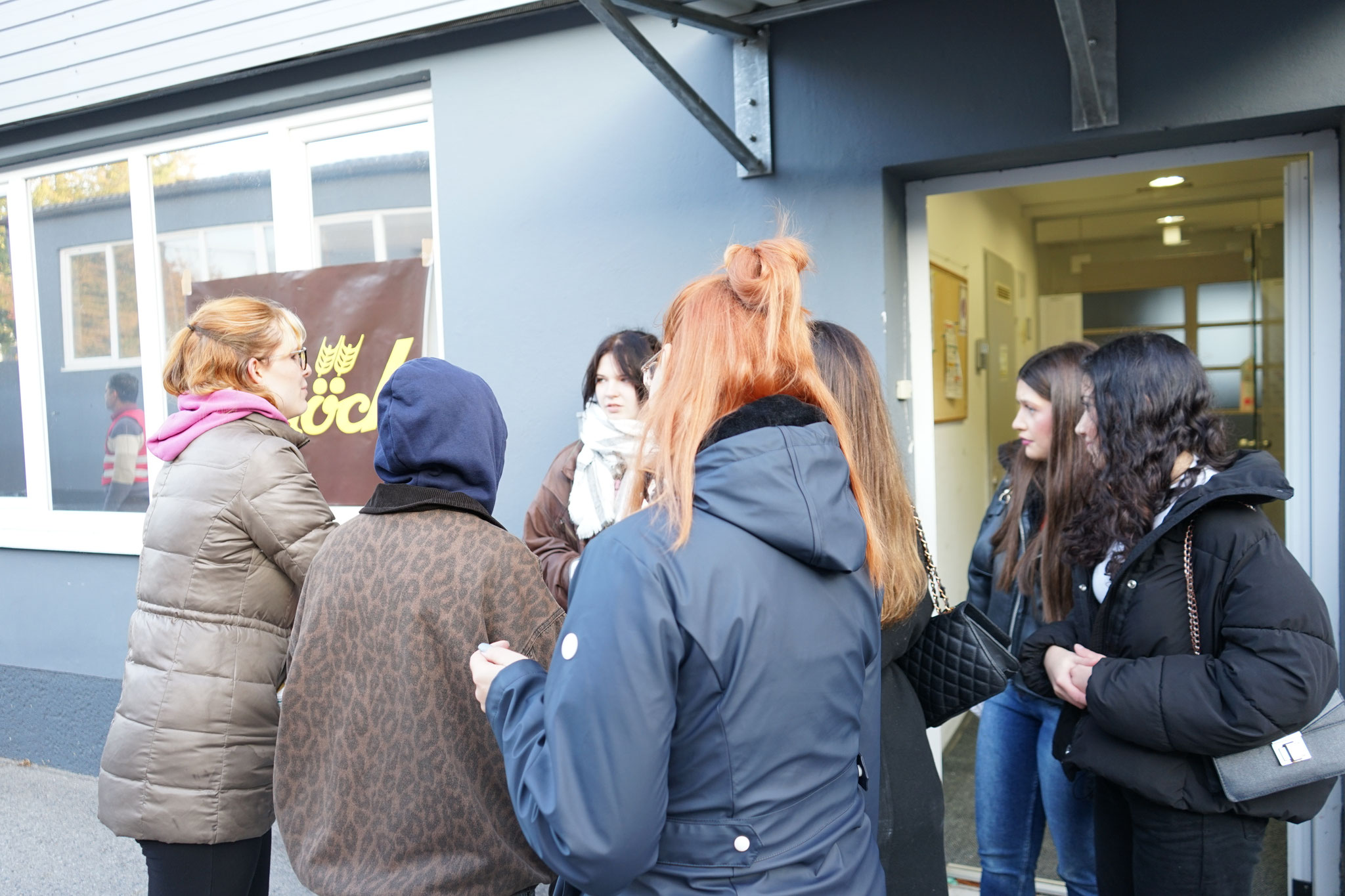 Dass Bildung über den Unterricht hinausgeht, bewies eine Klasse der Berufsschule für Frisur und Maskenbild in Floridsdorf. Jeden Dienstag gibt die Volkshilfe Wien in der Scheydgasse Lebensmittel an armutsbetroffene Wiener*innen aus.